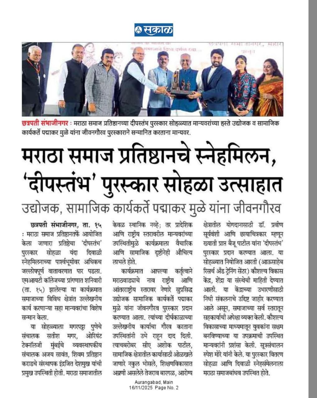 औरंगाबाद येथील जेष्ठ व आघाडीचे उद्योजक पद्माकरराव मुळे यांच्या मार्गदर्शनातून व नेतृत्वातून 'गंगामाई कृषी उद्योग' उभारला आणि विकसितही ...